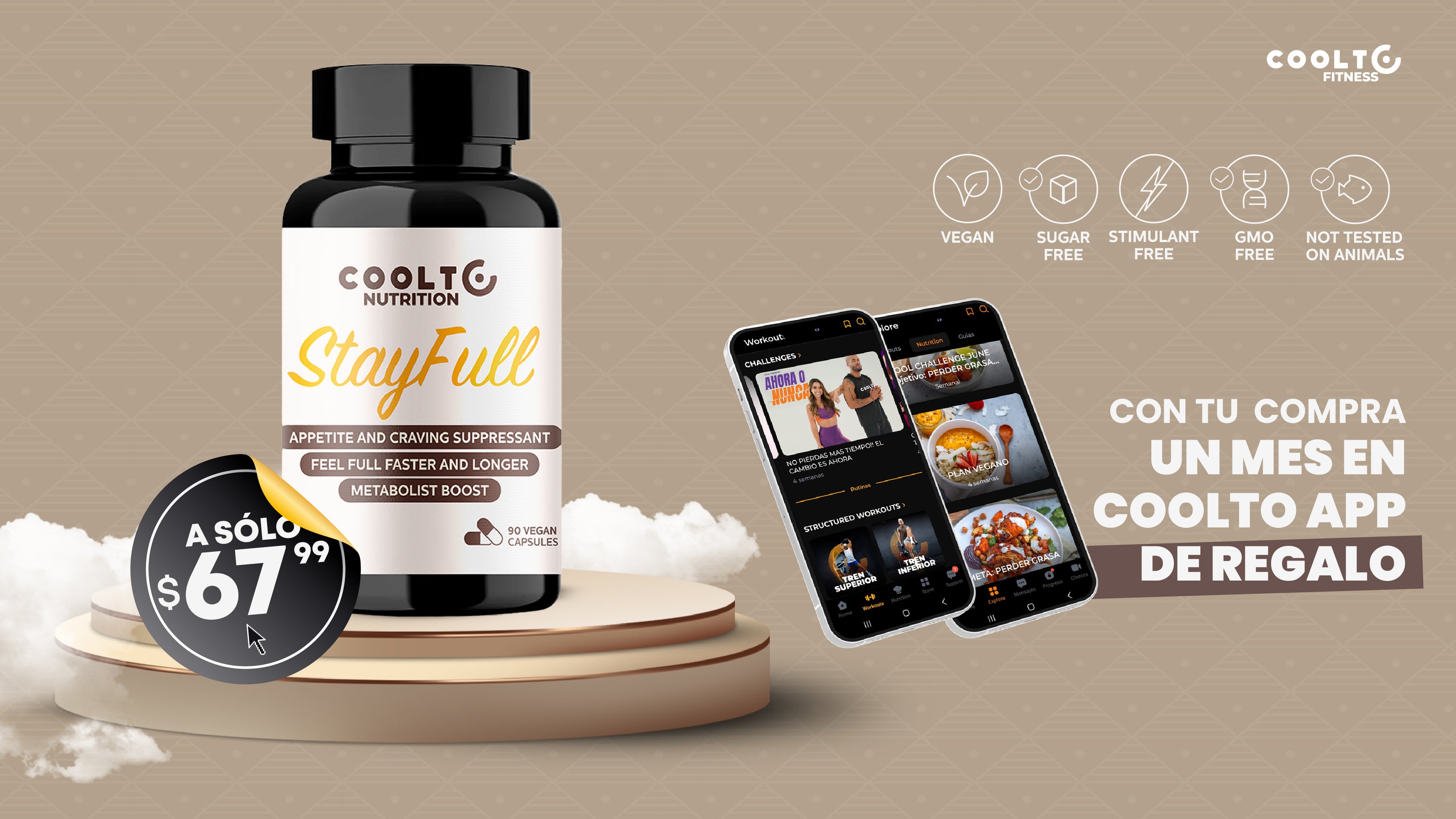 Coolto Nutrition se propuso crear una solución diferente: no otra pastilla “milagrosa”, no un quemador agresivo, no un producto lleno de estimulantes… sino un apoyo real, natural y consciente para quienes quieren sentirse llenos, tranquilos y en control.Así nació StayFull™: Una fórmula vegana y limpia diseñada para ayudarte a recuperar la calma que se pierde cuando los adictivos que nos rodean y los antojos toman el control. No queremos que comas menos. Queremos que te sientas mejor. Queremos que entiendas tu hambre, que escuches tu cuerpo, que rompas ciclos.