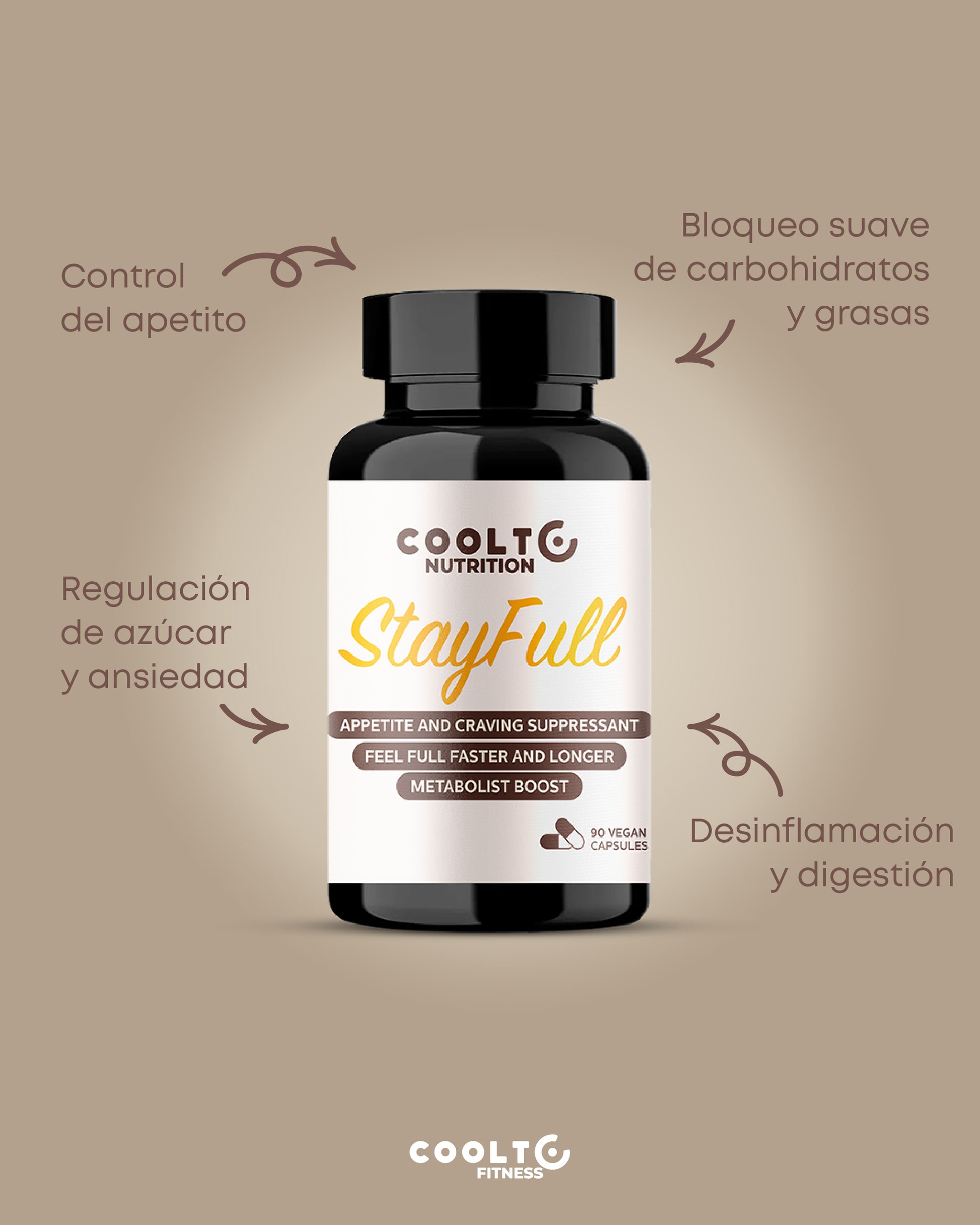 StayFull™ es un suplemento vegano premium diseñado para ayudarte a controlar el apetito,