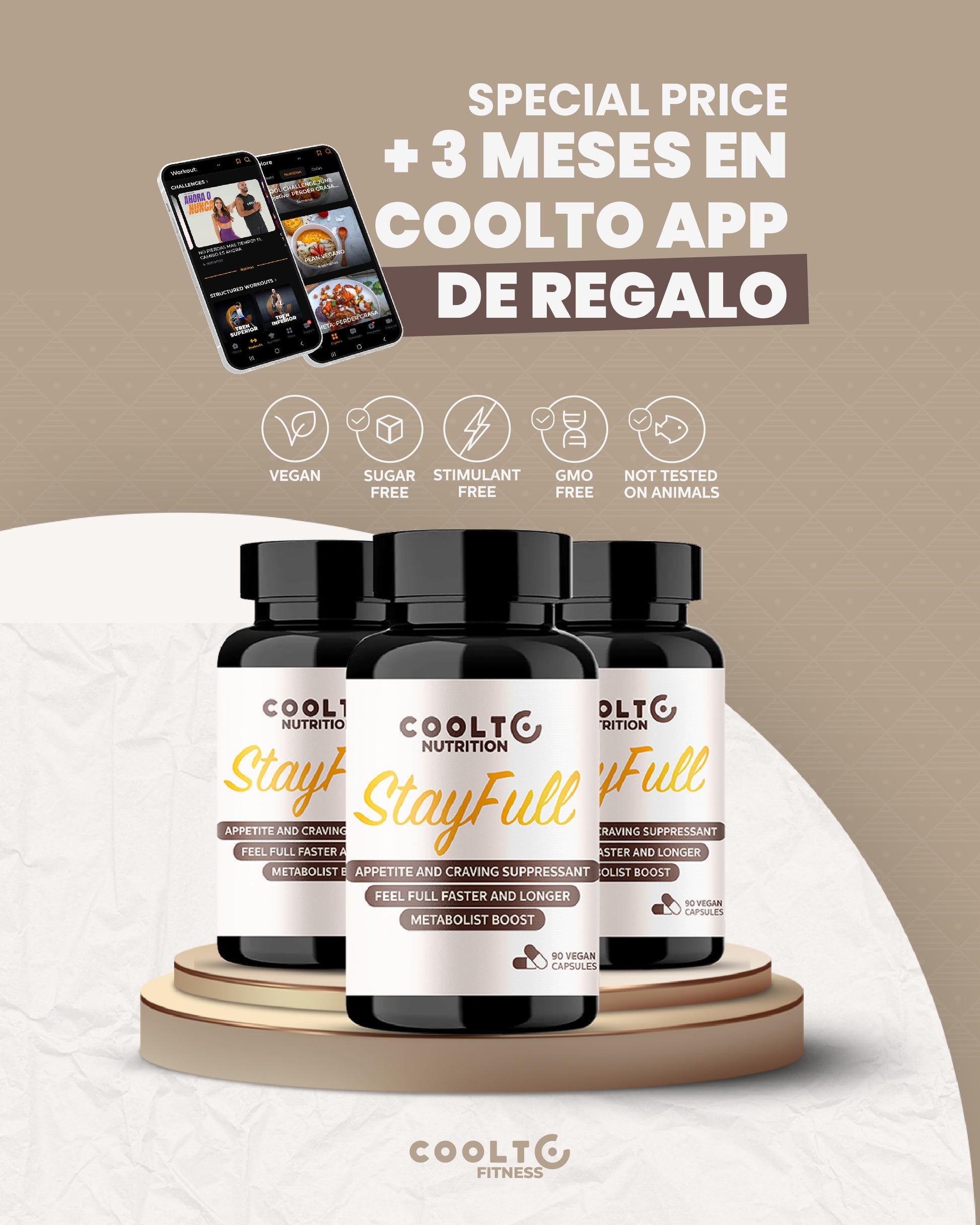 StayFull™ – Suplemento Vegano para Control del Apetito PACK 3 +3 MES GRATIS APP